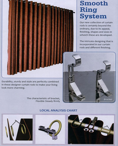 Dibawah ini adalah sebagian contoh dari produk Curtain Smoth Ring yang kami produksi, jika Anda berminat dengan salah satunya, silahkan hubungi kami, atau jika Anda memiliki desain sendiri silahkan kirimkan ke email kami. Untuk melihat lebih banyak contoh produk Curtain Smoth Ring, silahkan lihat galleri Curtain Smoth Ring, dibawah ini, anda akan menemukan lebih banyak produk Curtain Smoth Ring untuk Anda pilih.